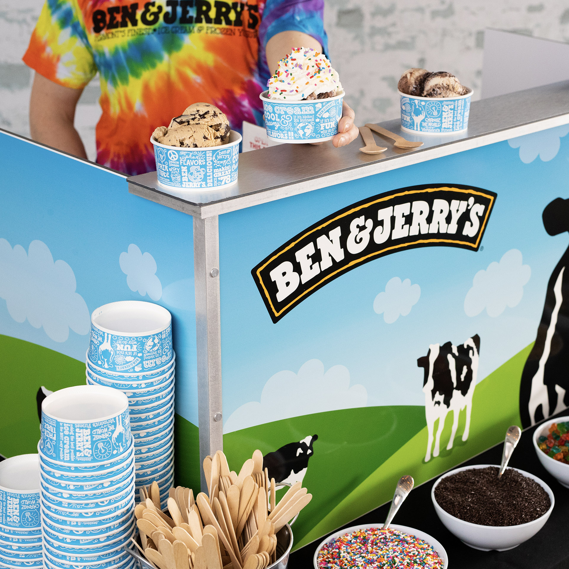 Office party coming up? Lobby event in your office building? Birthday party? Even a wedding? Aren’t you bored with the same old same old taco bar or tired sheet cake? Ben & Jerry’s Ice Cream Catering specializes in serving your favourite flavours in cups, cones, and sundaes to turn your next gathering into an ice cream extravaganza. We show up and do it all—all you do is eat ice cream and party on.