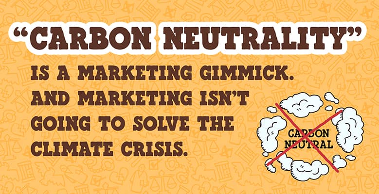 Brands making carbon-neutral claims mislead consumers into thinking that we can somehow shop our way out of the climate crisis. Well… we can’t. What companies actually need to do is take real action—now.